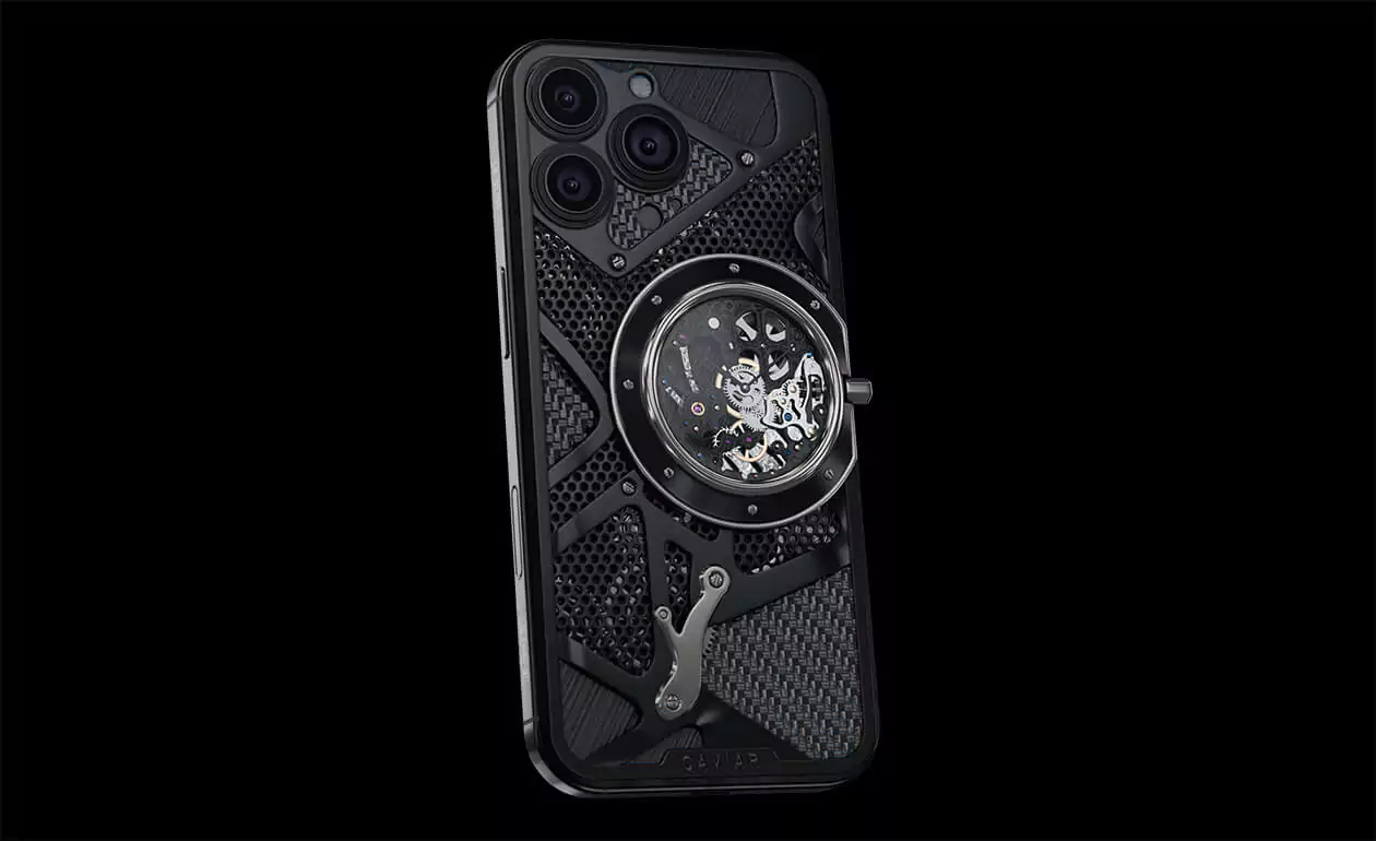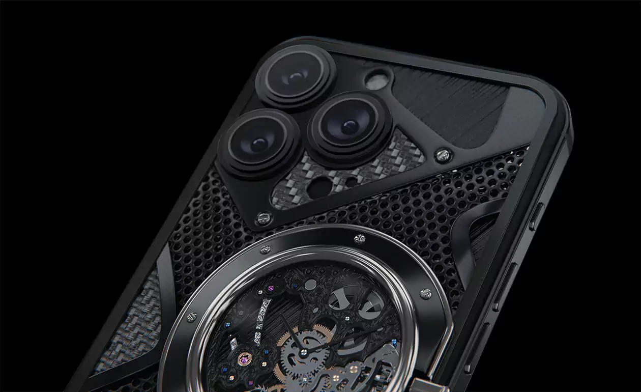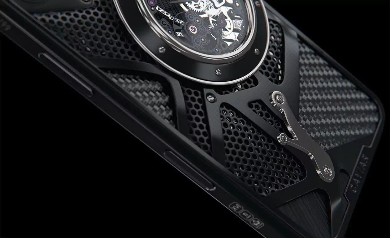 If you could create a skeletonized design of a high-speed car, it would look like the Booster. Black reinforced grilles, the cold glow of titanium fasteners, brutal reinforcing bolts, and skeleton watch movement embedded in the iPhone body - how pleasant it is to look at these details, how pleasant it is to hold this rare accessory in your hands.