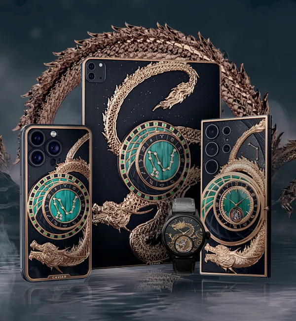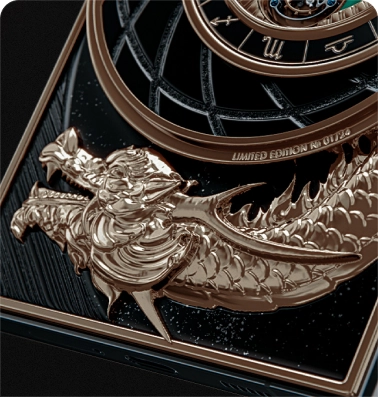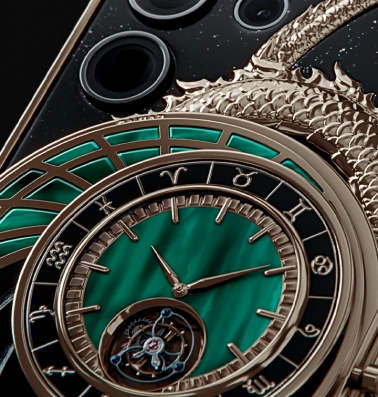 Indulge in the harmony of details - Caviar mechanical watch with a tourbillon and a green dial, voluminous dragon bas-relief, zodiac circle coated with 24-karat gold, a diamond constellation, reminiscent of Samsung's history. Only 24 pieces available worldwide.