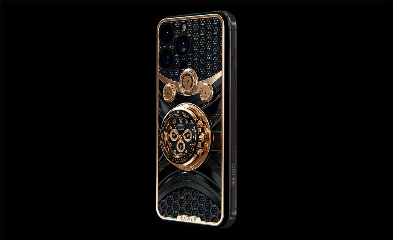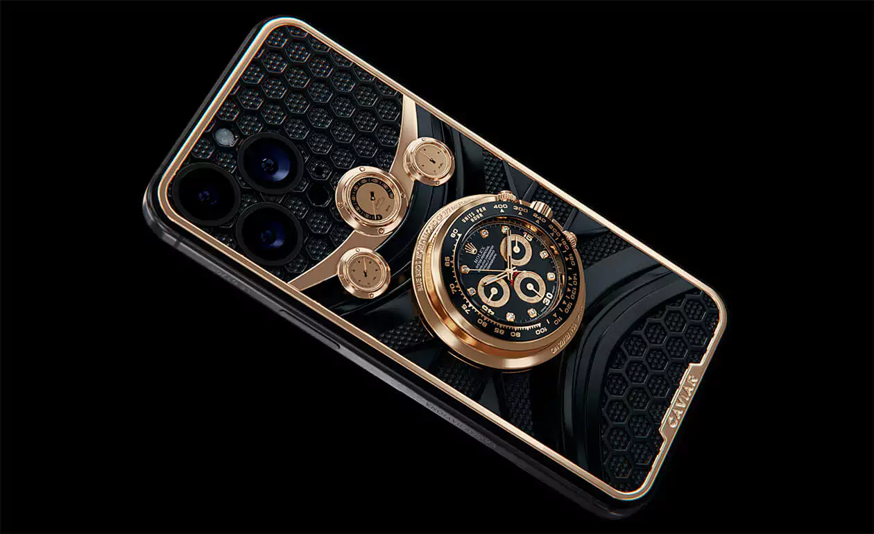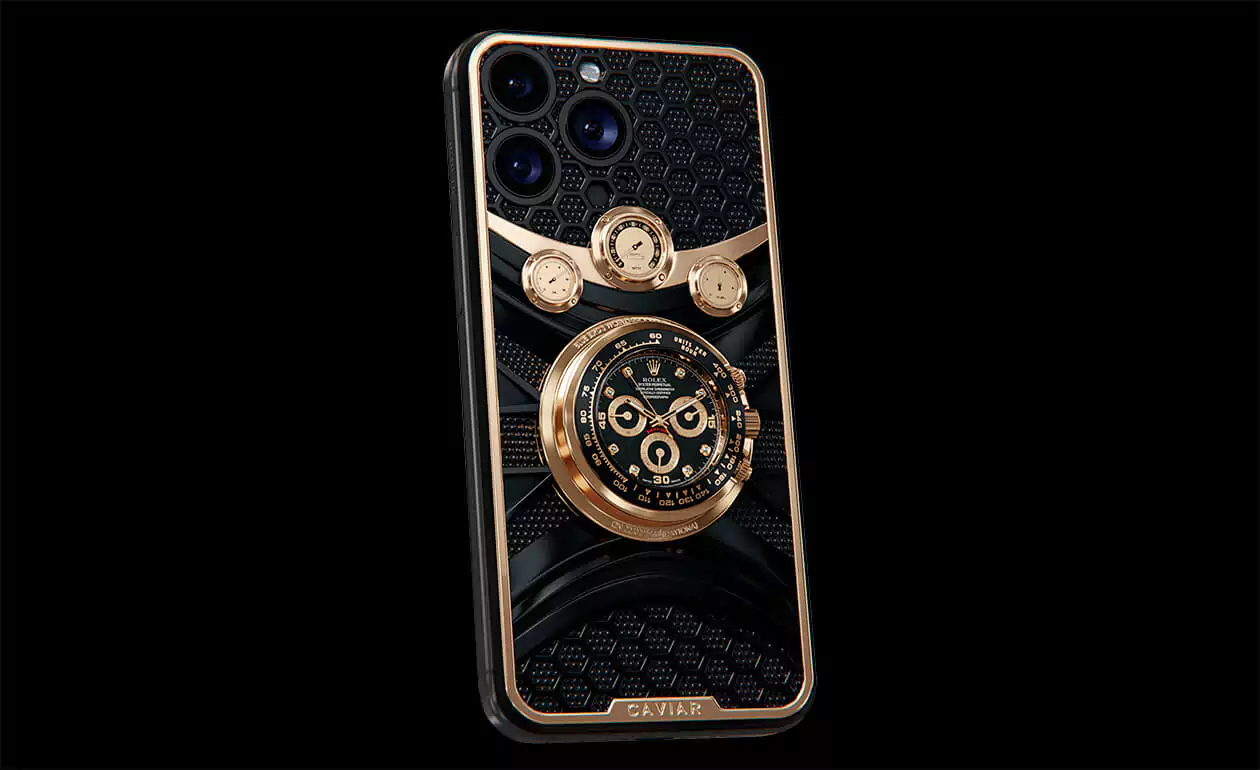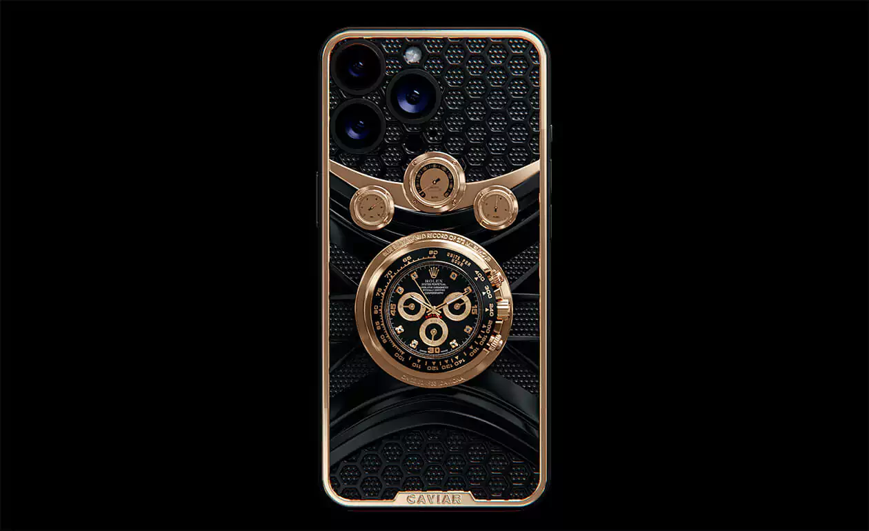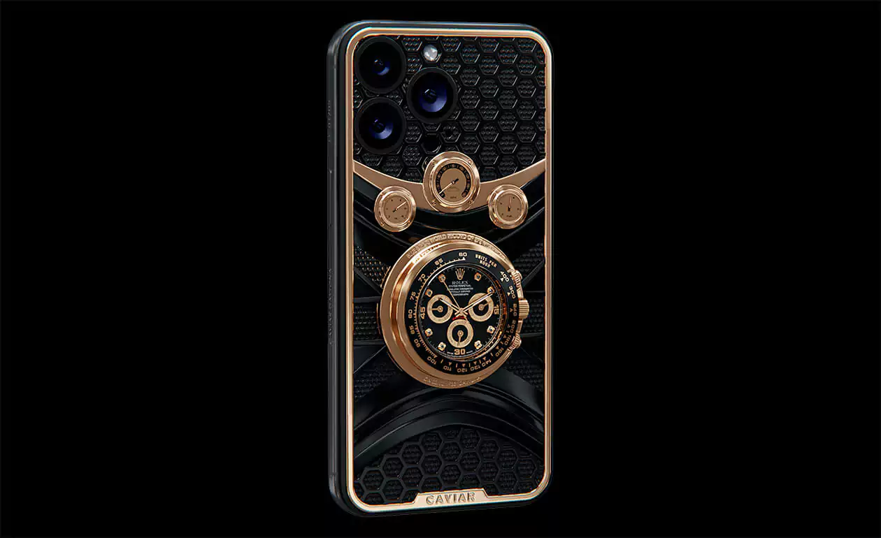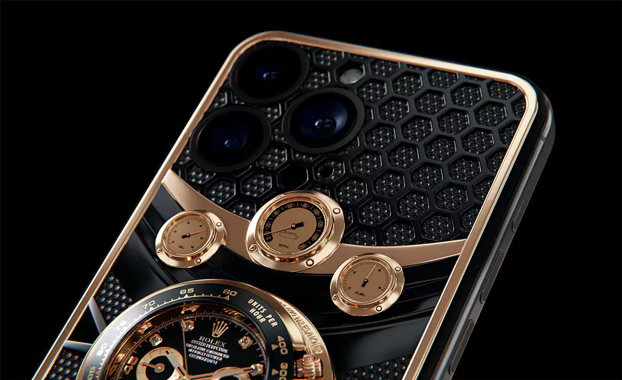 The Rolex watch is not the only addition to the iPhone, but part of an artistic composition that pays tribute to the history of the Rolex Daytona collection. The phone body is made in the style of racing cars of the 1930s, such as Campbell’s Blue Bird, which set a world speed record on the Daytona track. Decorative speedometers and switches made of gold create the image of the dashboard of the supercar, which marked the beginning of the great Rolex Daytona watch collection.