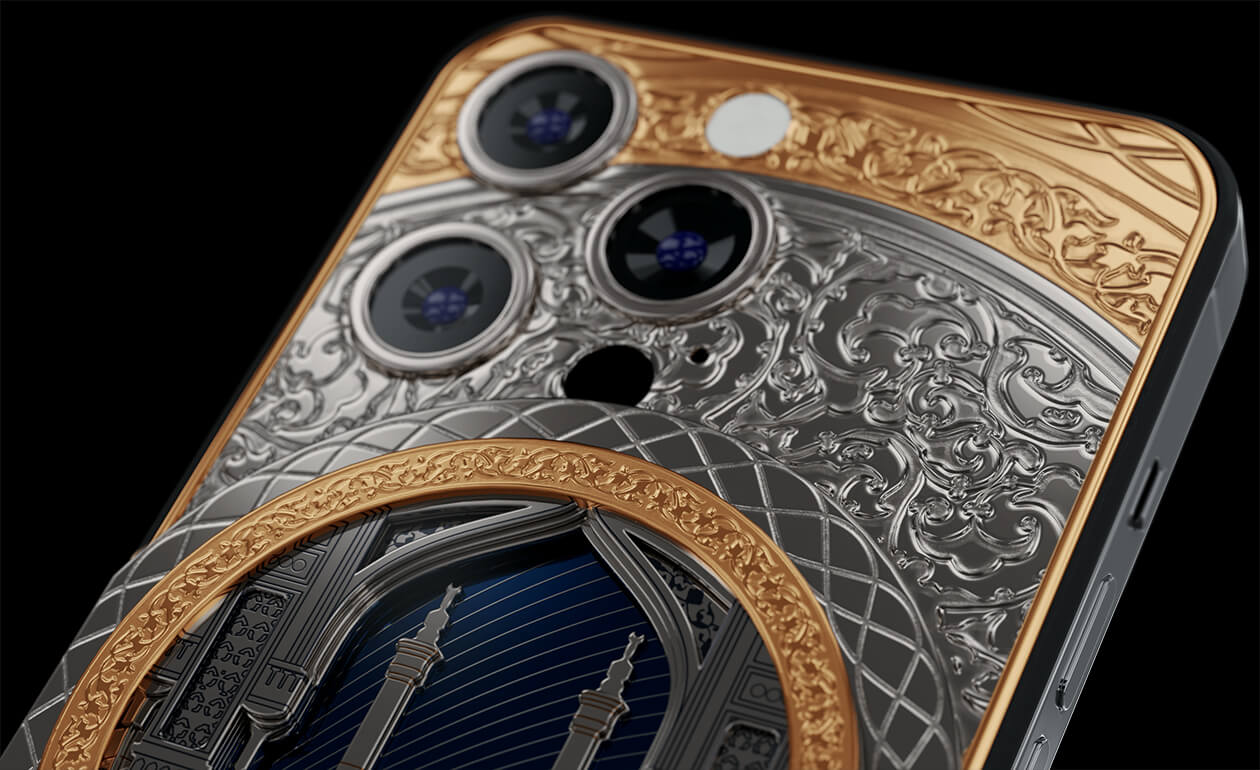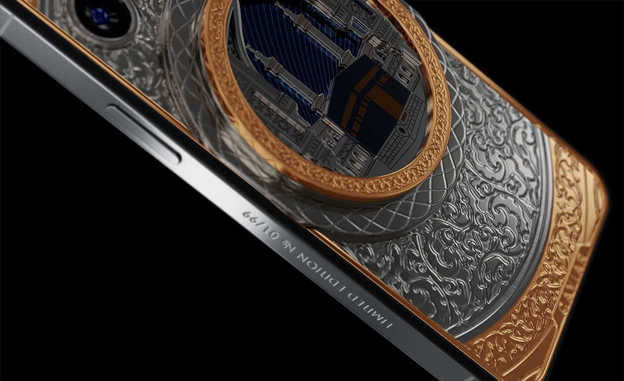 Followers of Islam believe that it was in Mecca where the Prophet Muhammad was born. The centerpiece of the smartphone is a multilayer 3D composition under shock-resistant glass - an ensemble of minarets and the most sacred site in Islam - the Kaaba. Followers of Islam believe that the Prophet Muhammad once kissed the Black Stone in the Eastern corner of the Kaaba; so, today pilgrims to Mecca try to touch or kiss this stone.