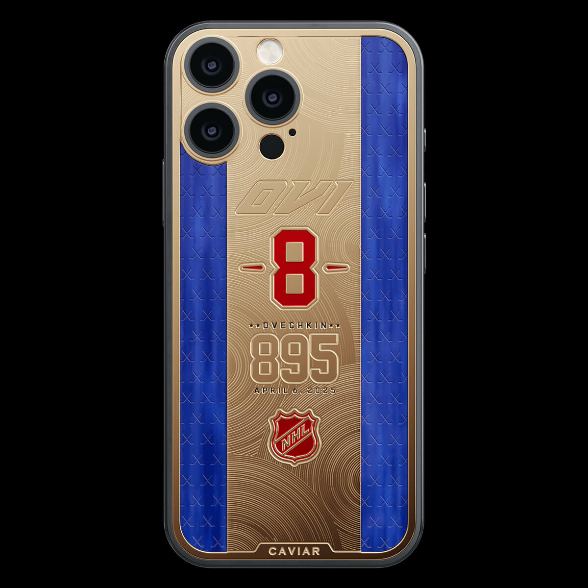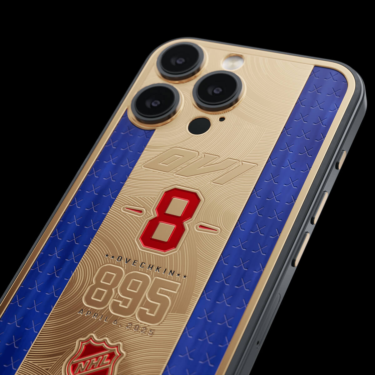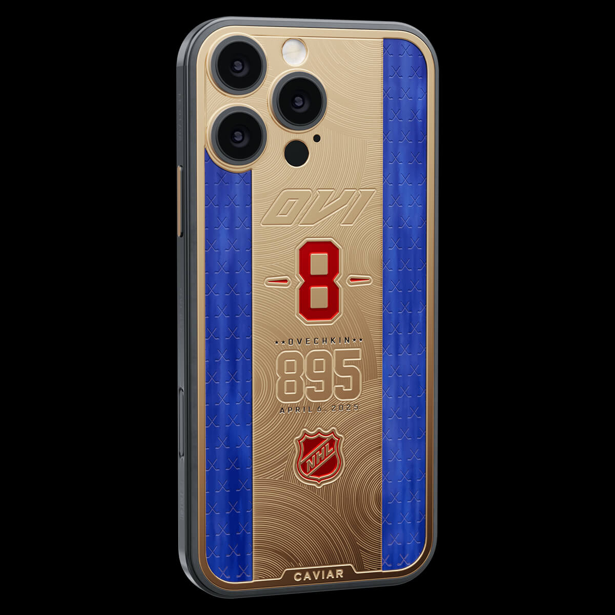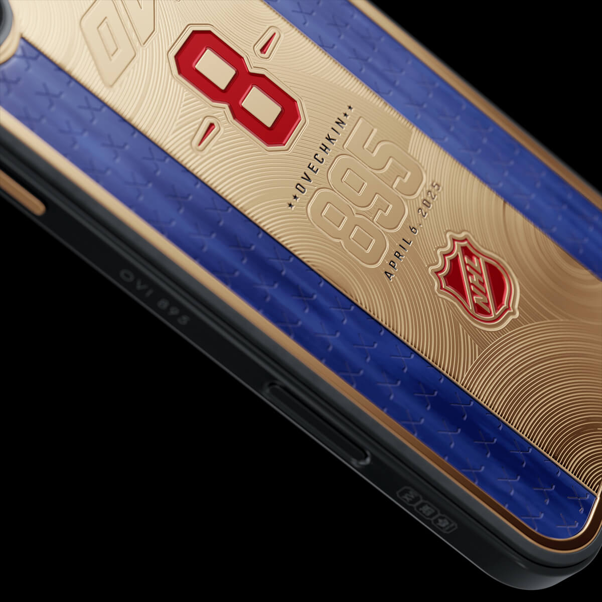 The masters at Caviar immortalized Alexander Ovechkin’s record in gold—the device’s body and the numbers 895 are plated with 24K gold. The number "8" holds special meaning for the Ovechkin family: Alexander began playing under this number as a tribute to his mother, Tatyana Ovechkina, a two-time Olympic champion of the USSR—it was her number on the Dynamo basketball team. That’s why, in Caviar’s design, the number 8 is adorned with red jewel enamel.