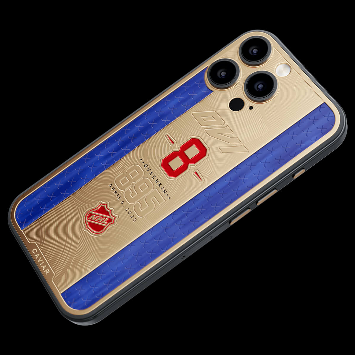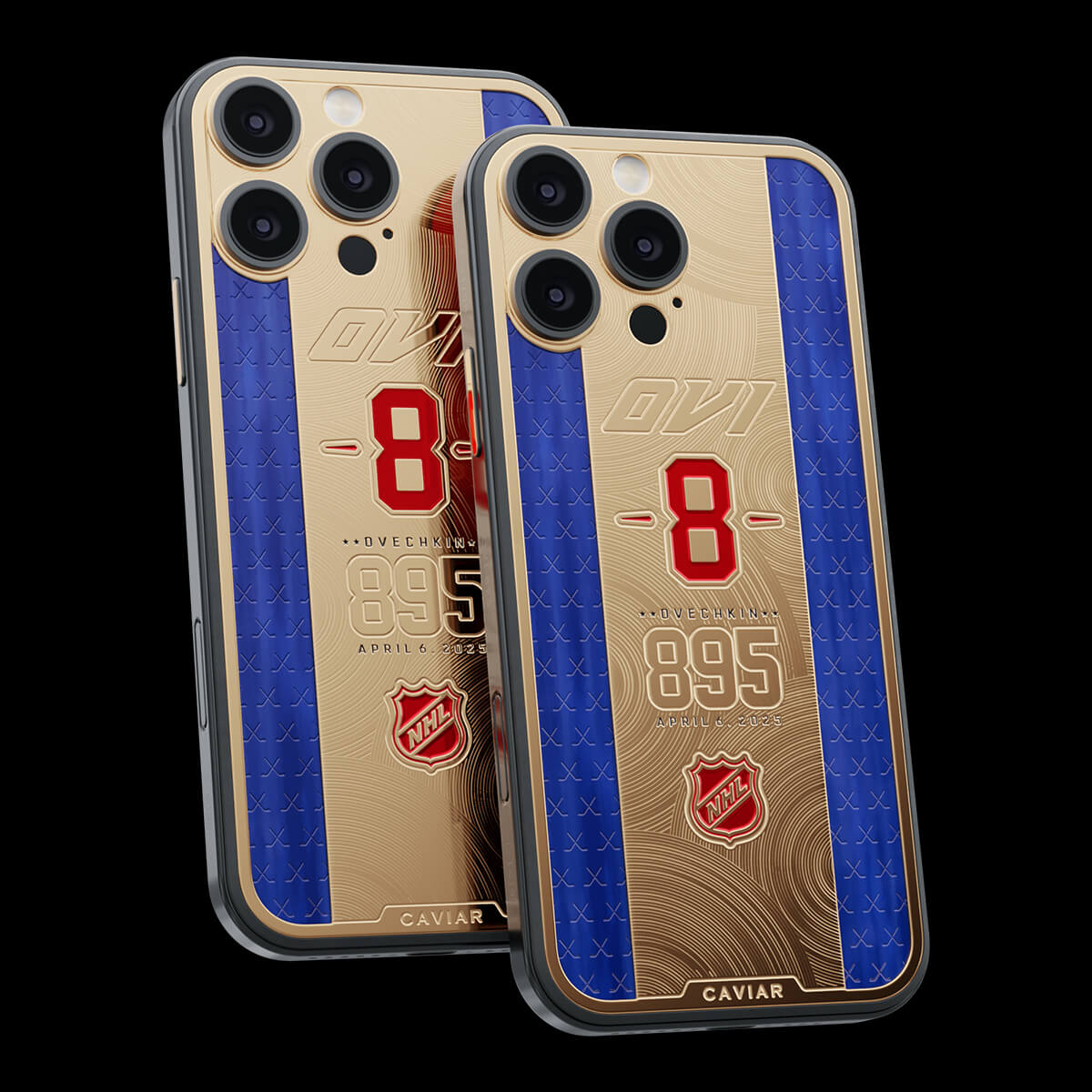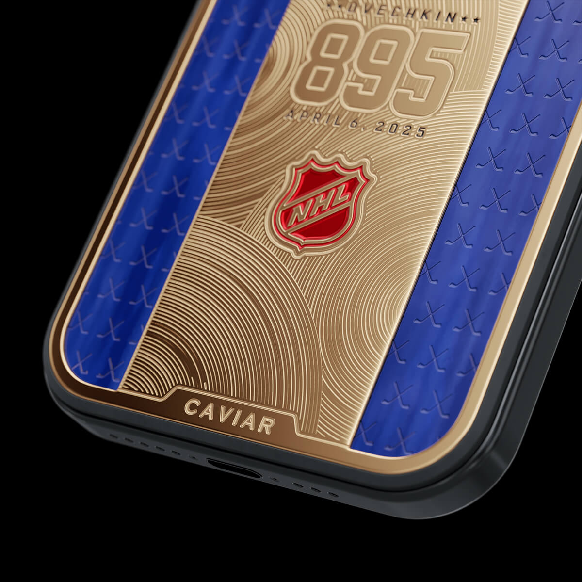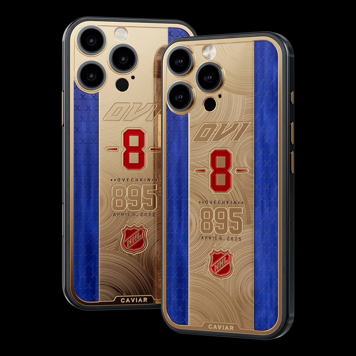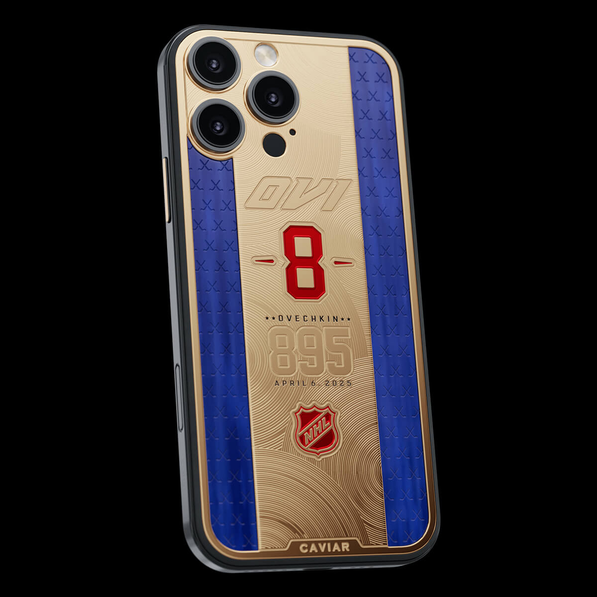 The masters at Caviar immortalized Alexander Ovechkin’s record in gold—the device’s body and the numbers 895 are plated with 24K gold. The number "8" holds special meaning for the Ovechkin family: Alexander began playing under this number as a tribute to his mother, Tatyana Ovechkina, a two-time Olympic champion of the USSR—it was her number on the Dynamo basketball team. That’s why, in Caviar’s design, the number 8 is adorned with red jewel enamel.