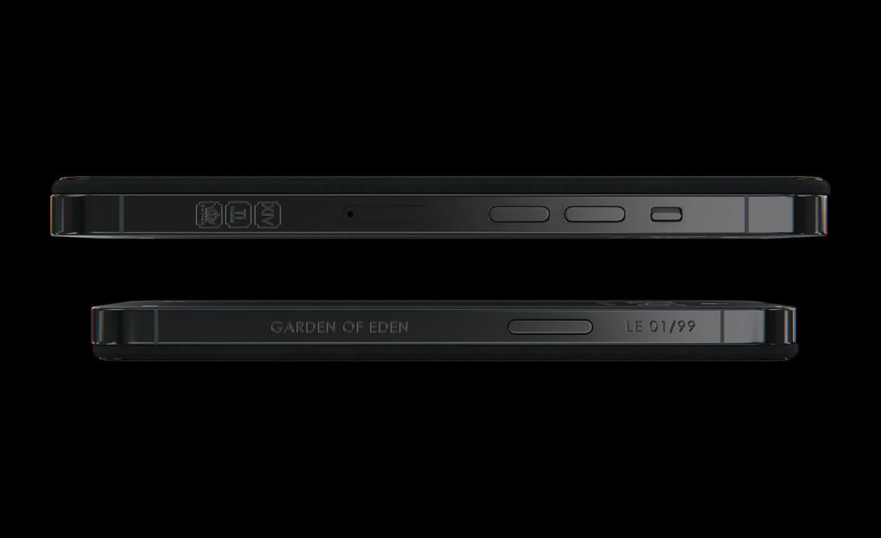 Caviar’s designers were inspired by the Old Testament story and created a smartphone with a red rose, which is shaded by black leaves, made of lightweight titanium with PVD coating.