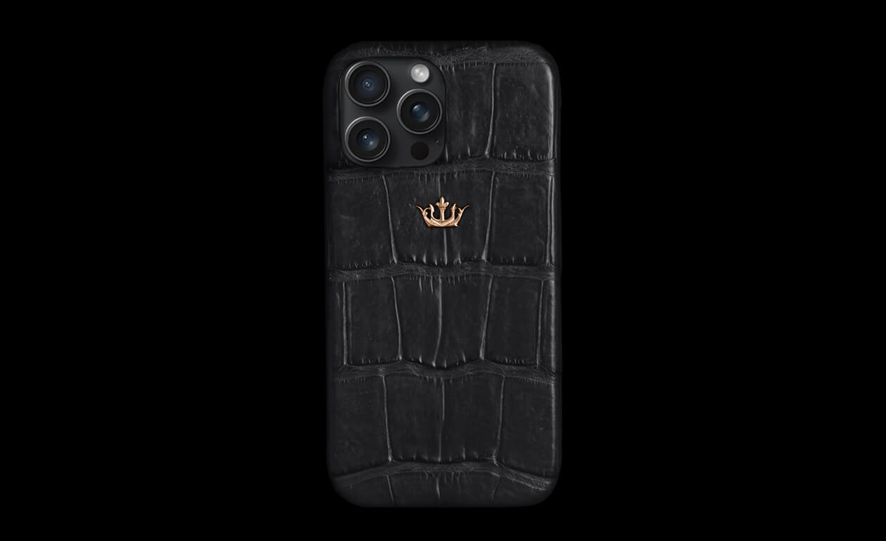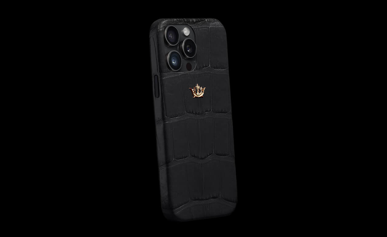 An absolute Caviar bestseller. A case made of natural crocodile leather in a noble black color, combined with gold accents and an enamel Caviar logo. The camera cutout is plated with 24-karat gold (Double Electroplated). The accessory emphasizes the owner's confident character. Classics brought to perfection.