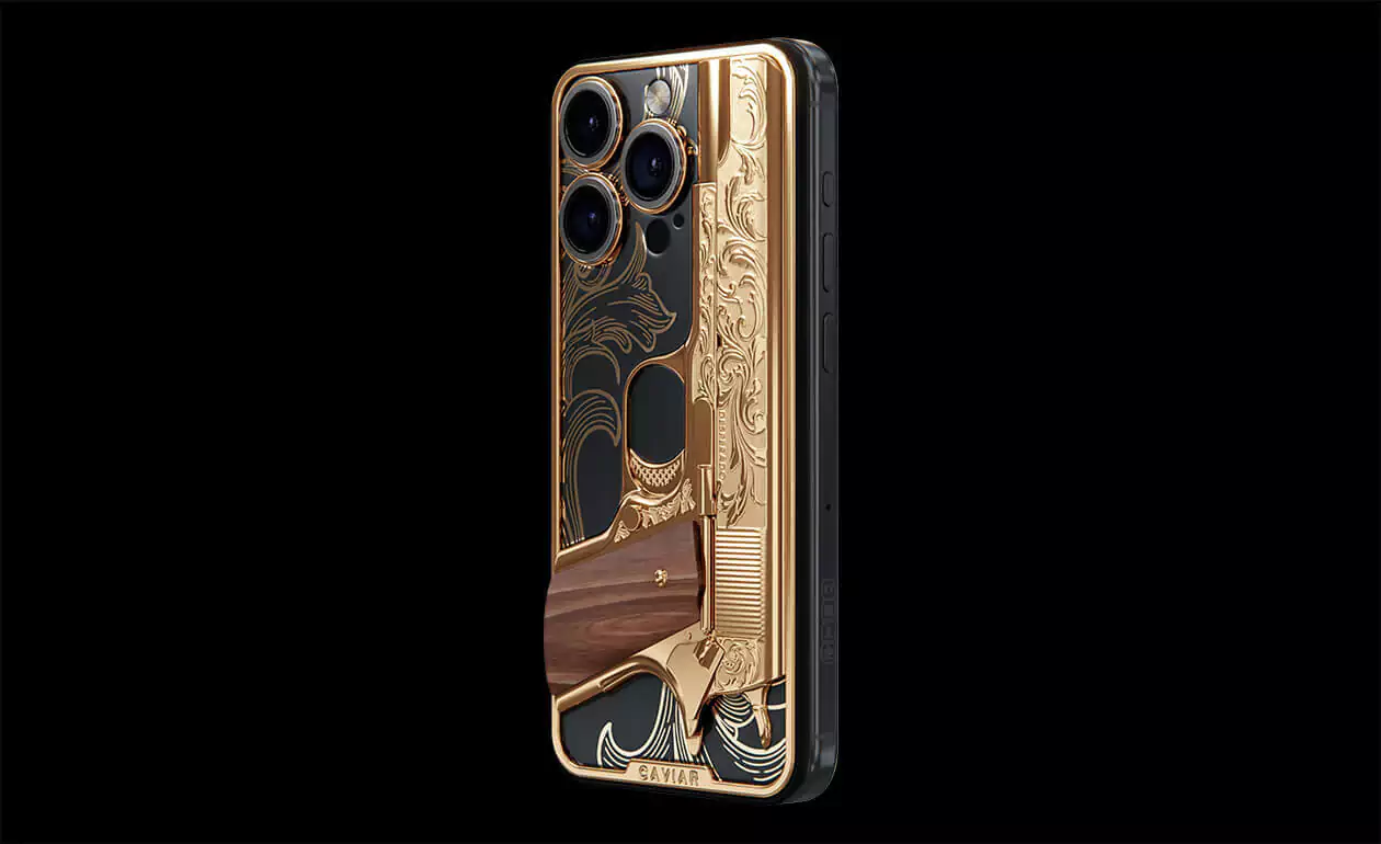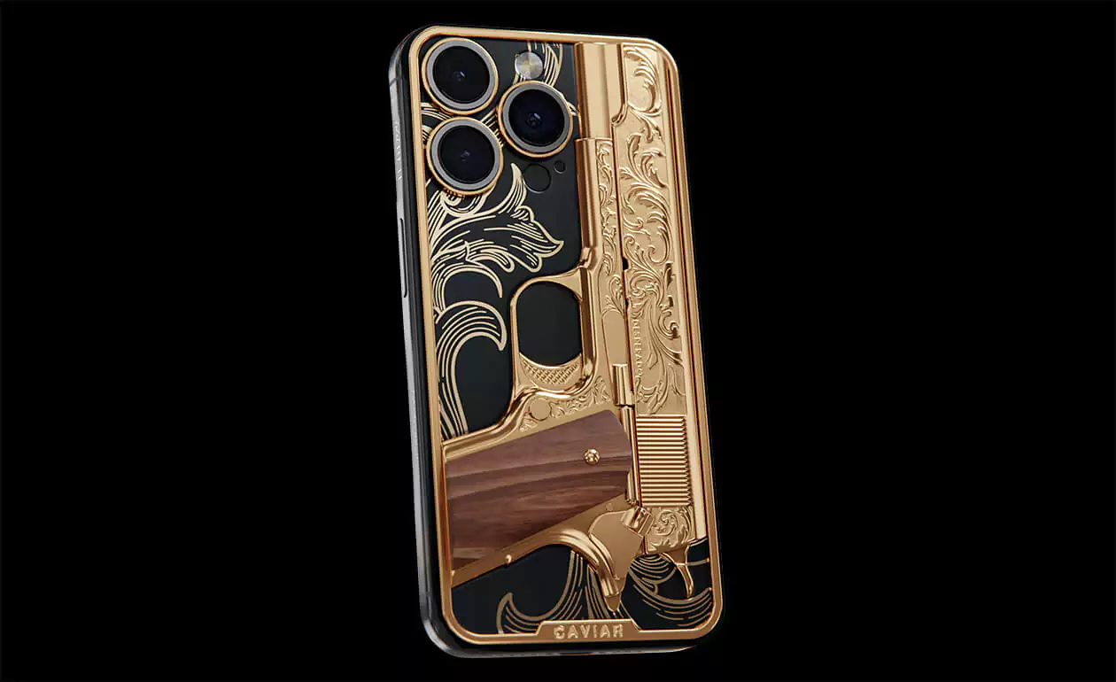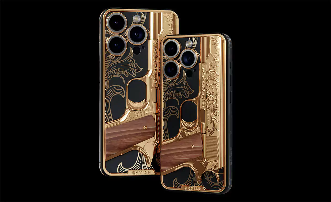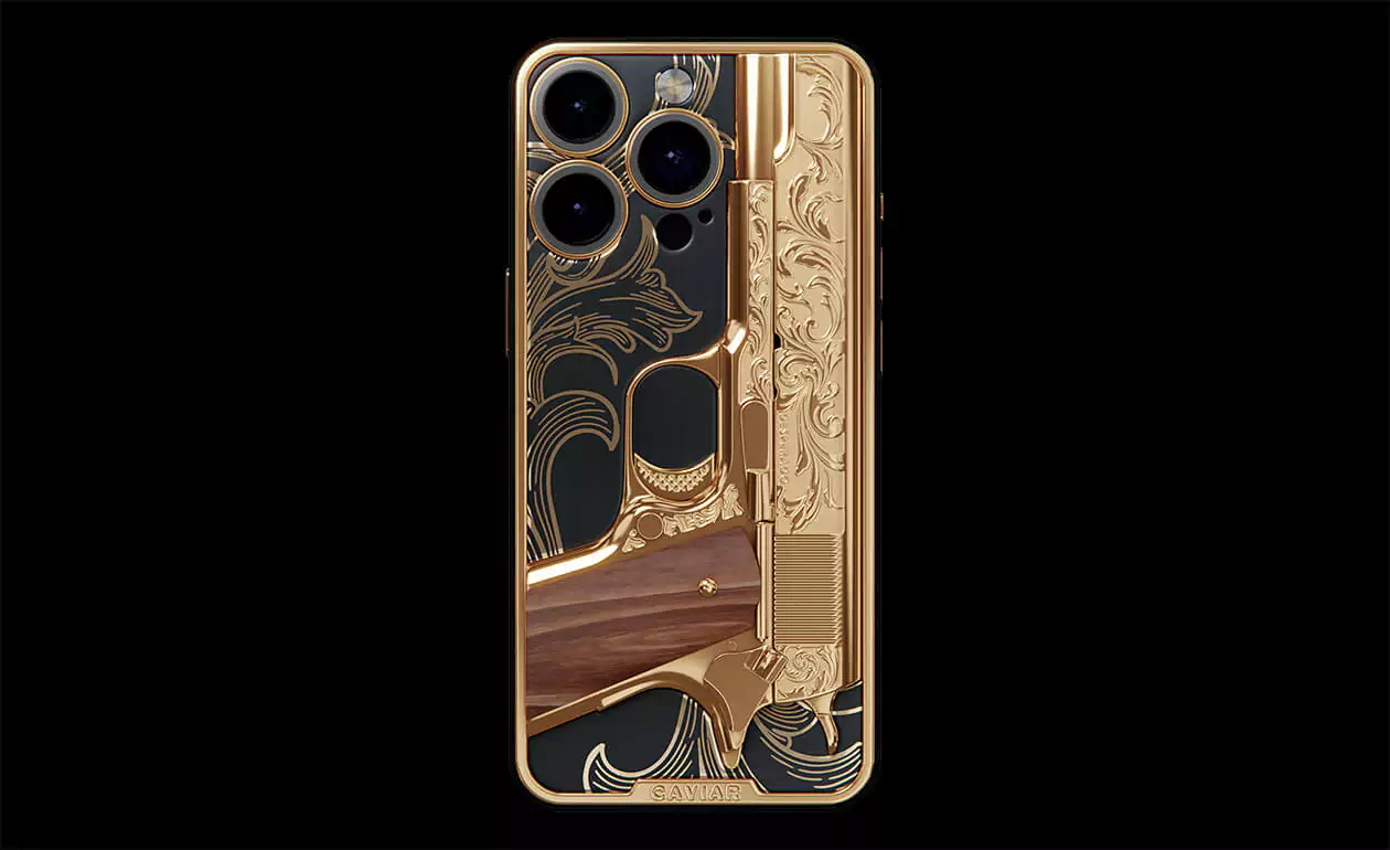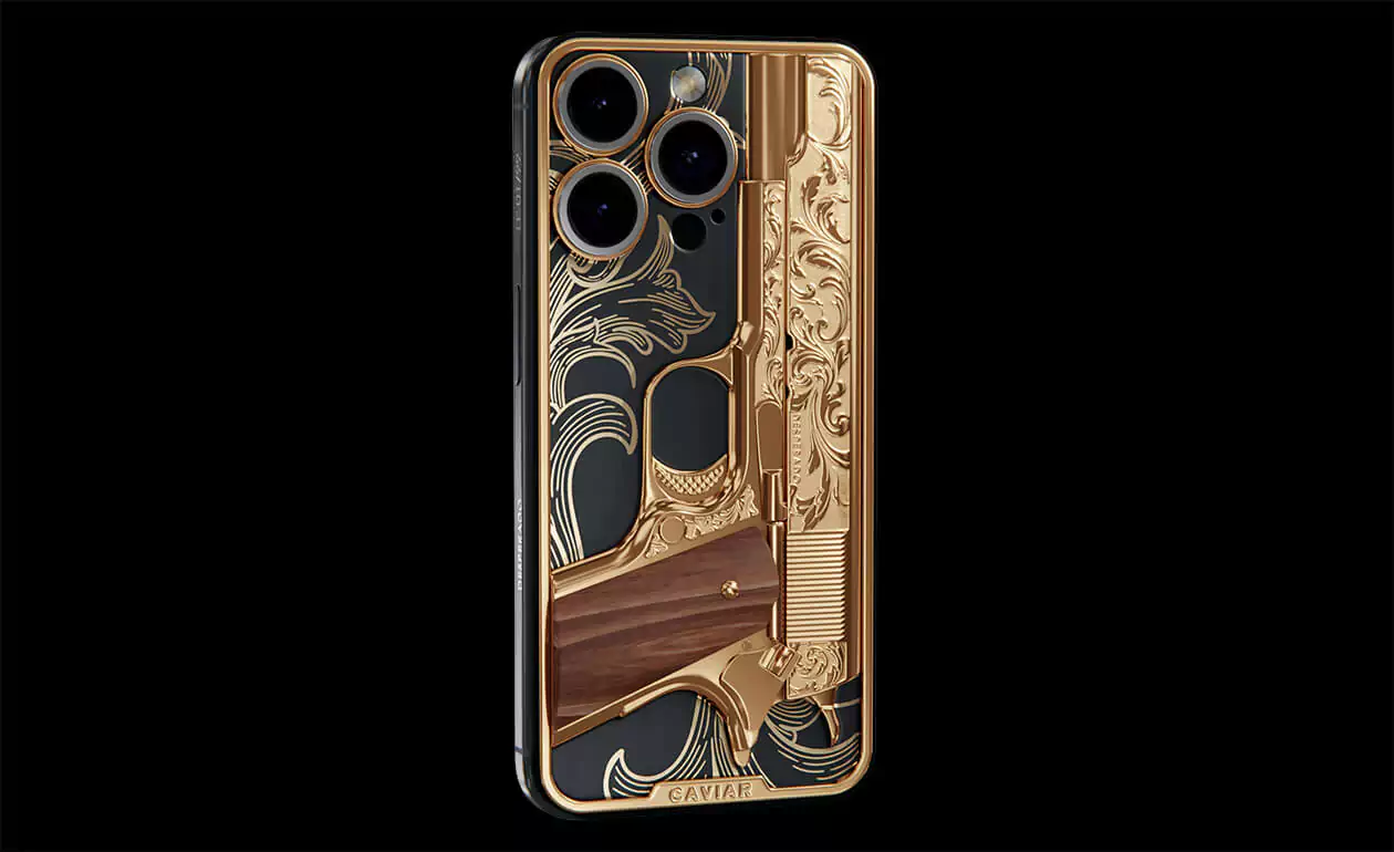 Caviar offers you a special pistol that never misfires. Notorious is a decorative element coated in 24K gold. It doesn't shoot bullets, but it hits the heart.