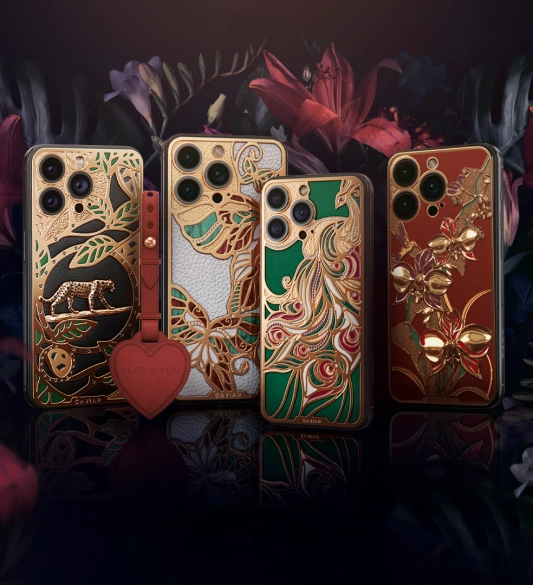 Garden of Eden - the embodiment of paradise animals and plants in the jewelry design of the iPhone. Exclusive phone models adorned with diamonds, gold, enamel, and Swarovski crystals are created to become a beautiful and sensual gift.