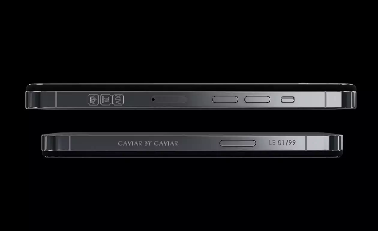 The top part of the iPhone is decorated with a patterned frame made of shockproof titanium. It seems as if an amazing delicacy lies in an ice vase right in front of you. The texture of the stingray leather imitates the playful bubbles of champagne in a graceful glass. The composition is completed by the embossed Caviar crown.