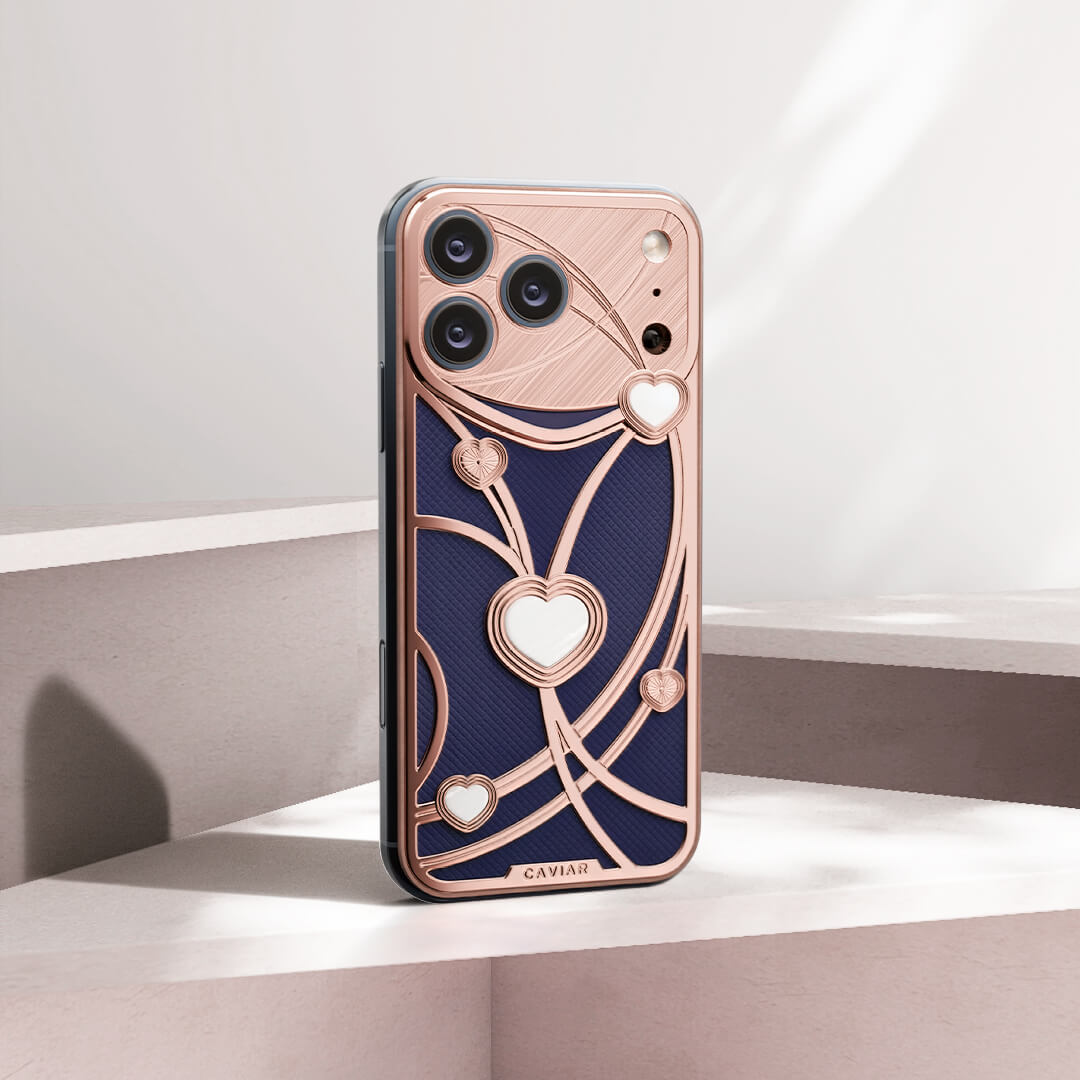 Dancing Hearts – decorated with mother-of-pearl and gold hearts. Smooth decorative lines create the effect of hearts dancing across the smartphone’s surface.