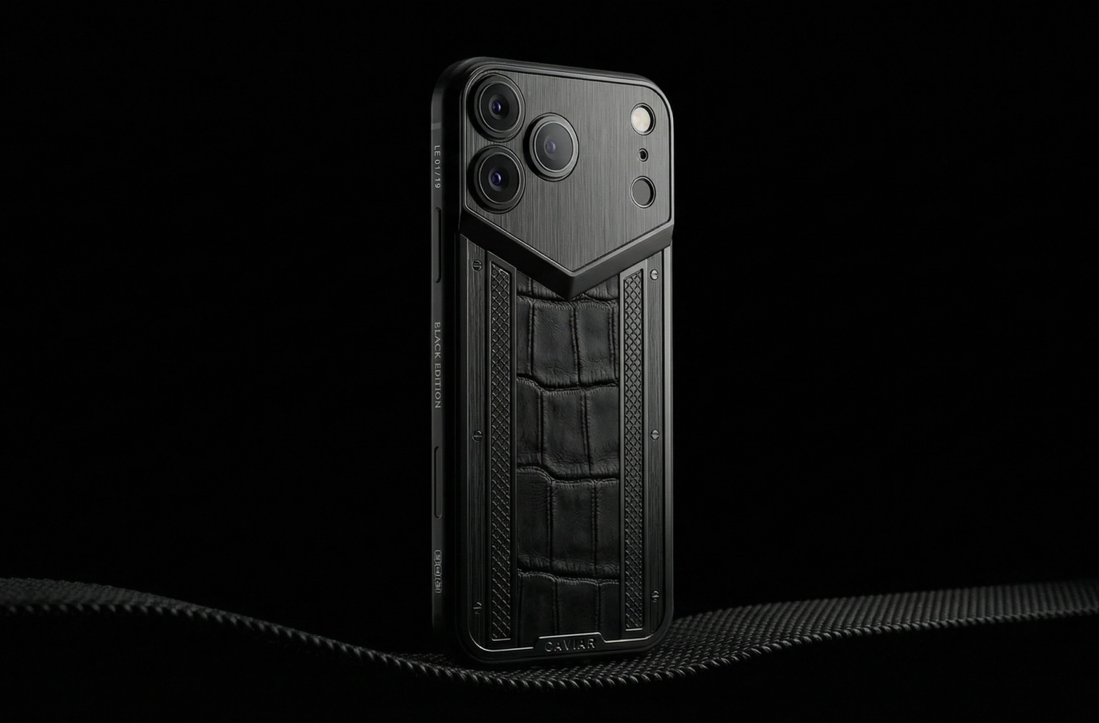 This durable armor for your iPhone 13 Pro is crafted from durable aluminium with anodised anti-corrosion coating and covered in real crocodile leather. The top of the model is decorated with a three-dimensional pattern in the style of ArtDeco.